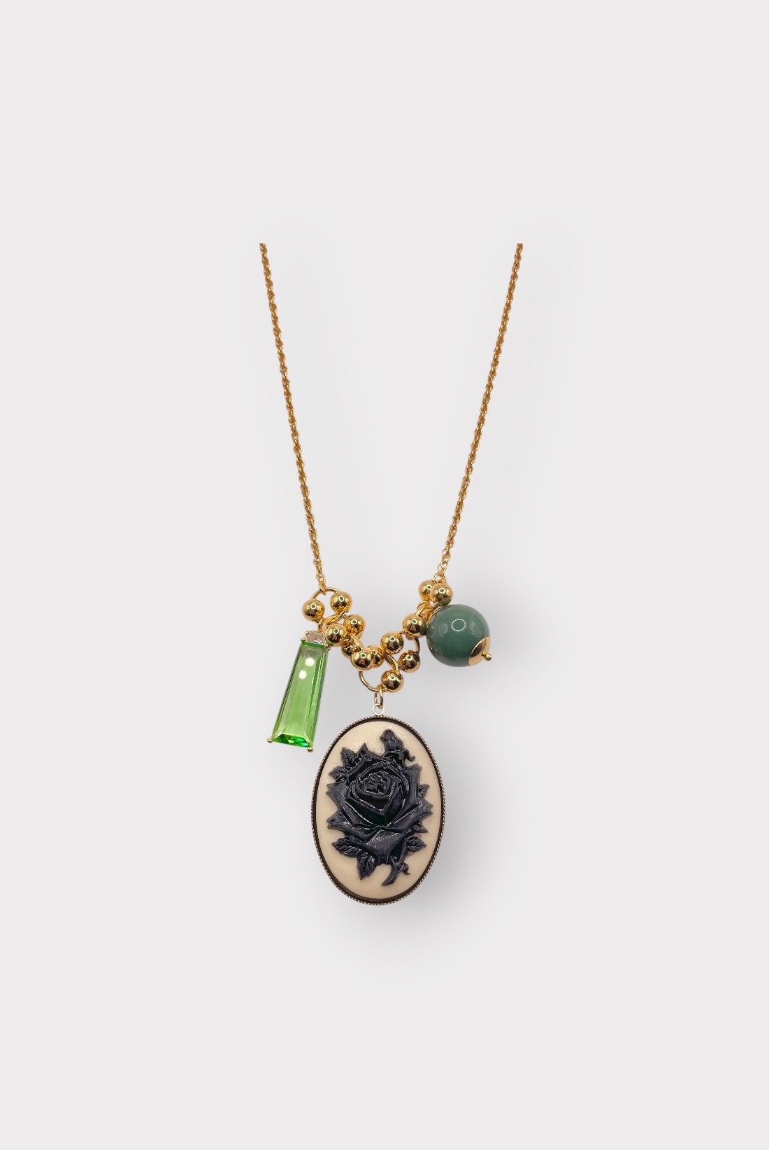 Fabriqué à la main dans notre atelier parisien, ce bijou artisanal associe une chaîne fine à un pendentif graphique inspiré des motifs vintage. Une création française pleine de caractère, qui illumine le décolleté et réinvente la féminité avec douceur.