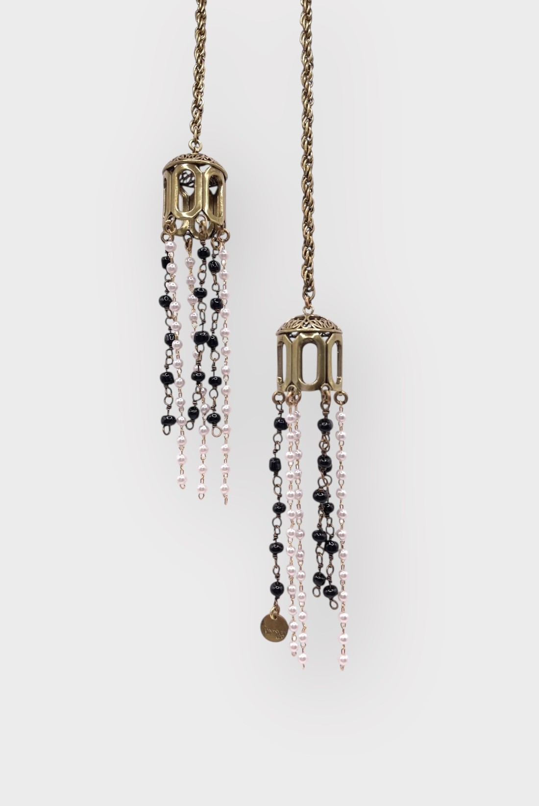 Le sautoir ELIXIR est une pièce vivante, qui suit les mouvements avec fluidité. Il ondule, tournoie et capte la lumière, créant une présence subtile et sensuelle.